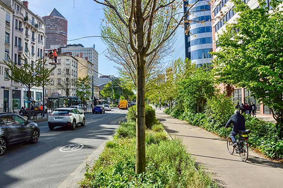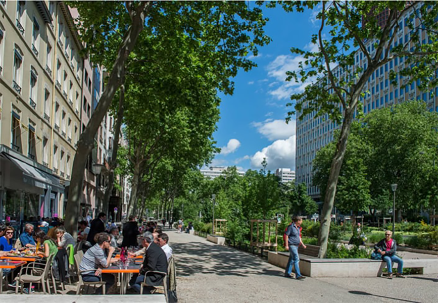 En 2007, lors des études préalables, l’ambition politique est forte et novatrice, puisqu’il s’agit de sortir d’une logique fonctionnelle et de flux pour penser un véritable éco-système urbain. La rue Garibaldi devient un terrain d’expérimentation pour intégrer la nature en ville, lutter contre les îlots de chaleur… et inspirer la Charte de l’arbre de la Métropole de Lyon.