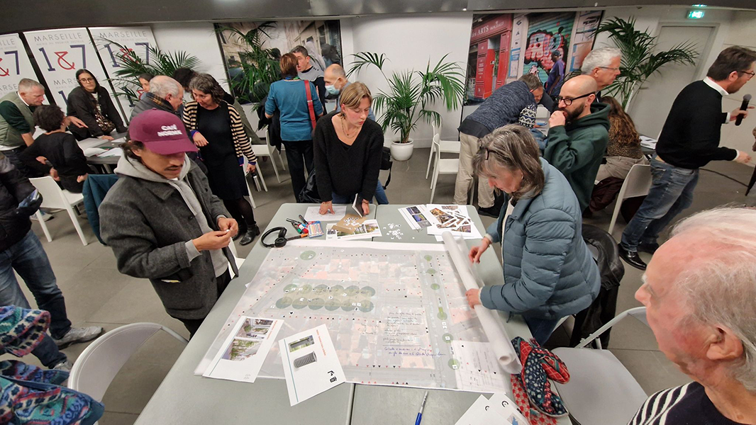 Intervenir post-crise : le défi de la confiance et la nécessaire délicatesse d’intervention. A Marseille, le drame des effondrements de la rue d’Aubagne donne lieu à une mobilisation forte des acteurs du territoire et de l’Etat. Un PPA est signé, concernant près de 200 000 habitants dans le centre-ville de Marseille et la SPLA-IN est créée pour accélérer la lutte contre la dégradation de l’habitat privé dans le centre-ville de Marseille. C’est dans ce cadre complexe que l’agence et ses partenaires travaillent sur 4 îlots fers de lance de la transformation, qui permettent aussi de tester des pratiques et des modes de faire. Dans les secteurs Hoche-Versailles, Belle de Mai et Noailles, nous engageons une mise en oeuvre démonstratrice : sur le bâti autant que sur l’espace public, par des interventions ponctuelles, modestes ou plus ambitieuses, de l’ordre de l’acupuncture urbaine.