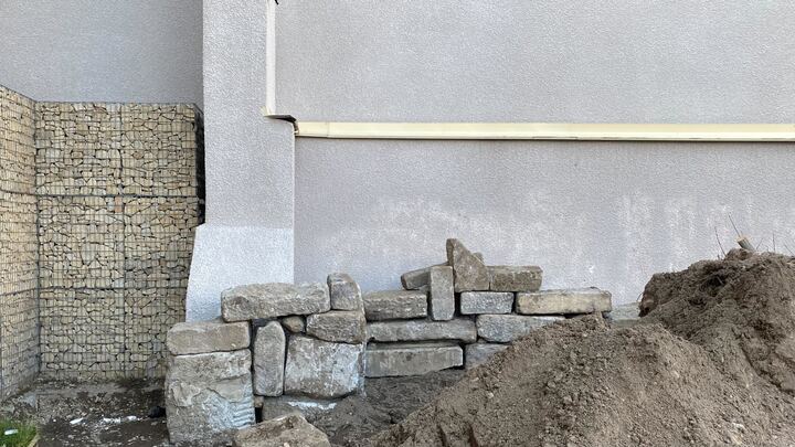 Un élément central de la conception était de valoriser les murs pignons qui entourent le jardin pour les rendre plus acceptables dans le paysage urbain. Les murs sont aujourd’hui supports d’un ensemble de dispositifs permettant au jardin de se composer à la verticale. Une fontaine murale et des récupérateurs d’eau de pluie – alimentés par dérivation des gouttières des copropriétés – viennent s’intégrer dans un soubassement en gabion support aux plantes grimpantes et refuge pour la petite faune. Des structures métalliques arrimées aux façades aveugles permettent à la végétation de s’élever dans le jardin, et offrent un support à des nichoirs et des micro-jardinières en hauteur.